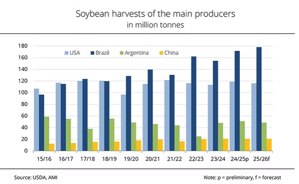 南美洲在本作物年度进一步巩固了其全球大豆市场的主导地位。